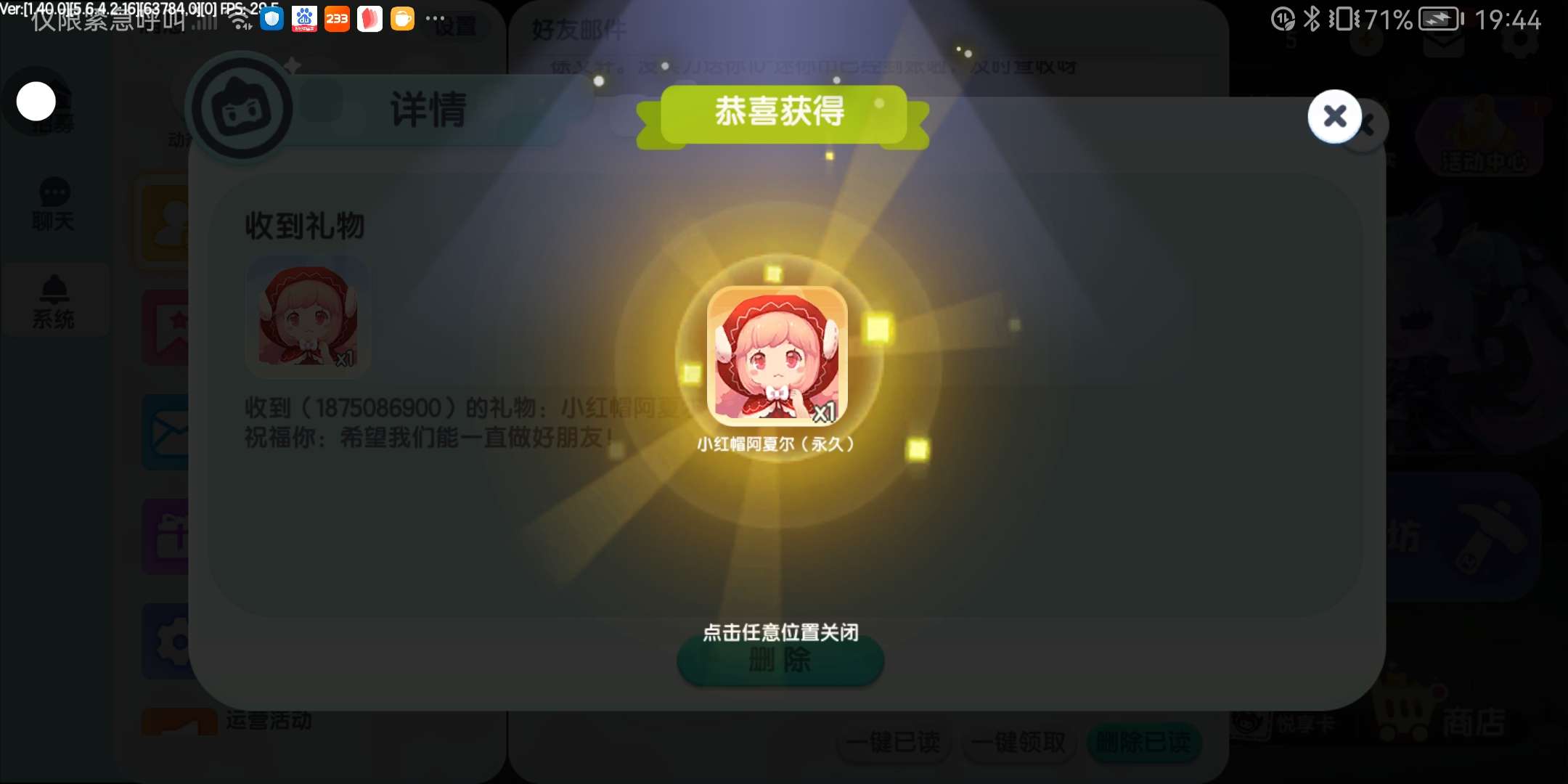这位宝宝送了我一个皮肤,真的很大方(//∇//)真的爱死他了,我有生以来第一次收到皮肤,我能用到的词汇全都用在这了,非常的感谢(o^^o)