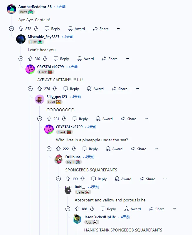 并且玩家们开始自发创作海绵宝宝相关二创趣图,就让我们先一起看看那些海外斗士的发疯时刻吧!