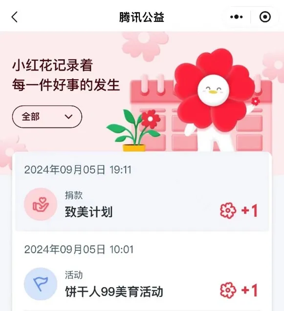 另外,小红花也将发放至“腾讯公益”你的小红花账户上噢!