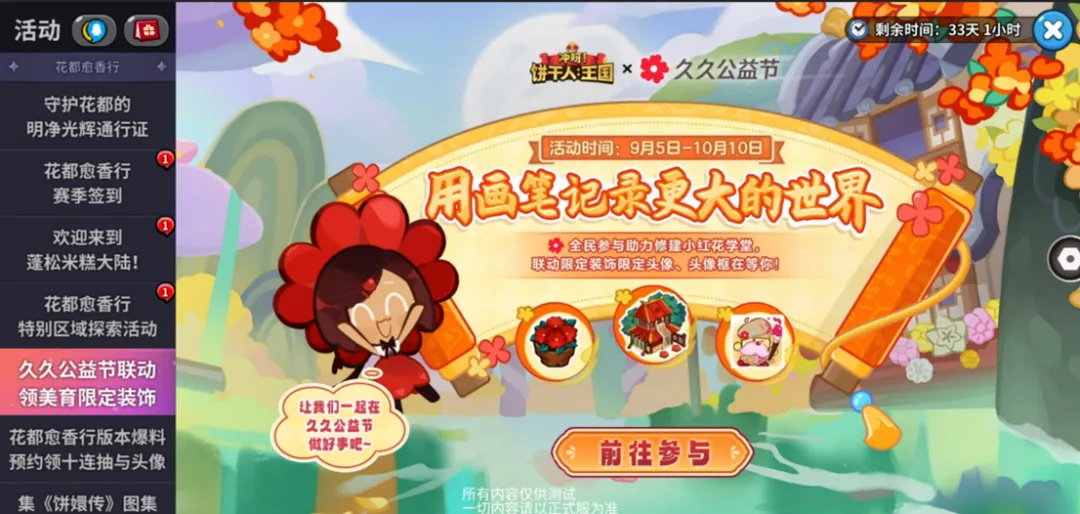 当全服累计获得小红花数量达到40w、80w、120w、160w和200w时,将会解锁联动称号「用画笔记录世界」、联动头像「画画的糖糖地精」、致美计划联动头像框、联动装饰「小红花盆栽」,以及终极大奖联动建筑「小红花学堂」!