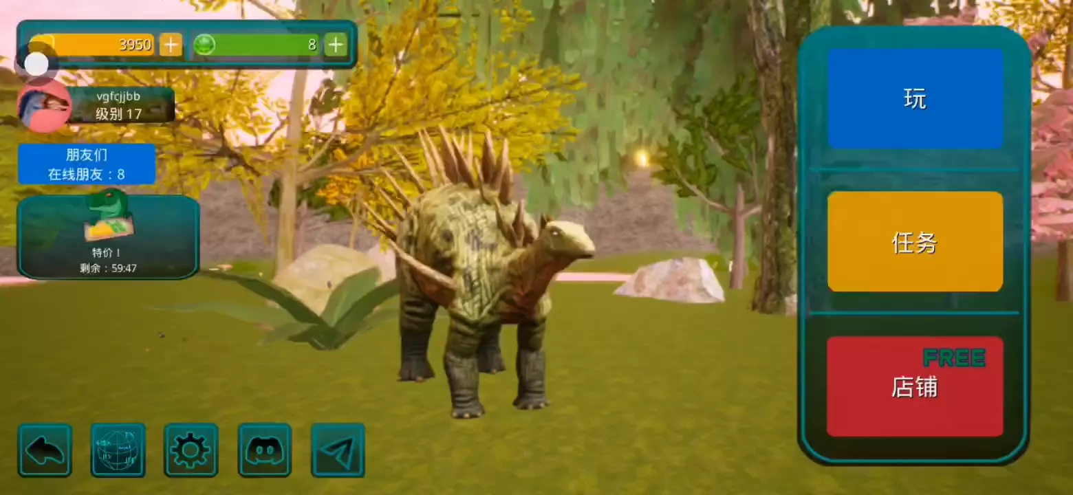 【更新:修复错误,提高稳定性】 恐龙岛是一款以侏罗纪世界为背景的逼真在线恐龙模拟器。 享受各种恐龙、逼真的图形和岛屿大地图。 选择你的恐龙并开始生存。 与您的朋友以及世界各地的玩家一起玩。 游戏中呈现了所有流行的恐龙,例如,从霸王龙、棘龙等食肉动物开始,到三角龙、甲龙等食草动物,游戏中有超过 23 种恐龙,包括飞行和游泳物种,以及所有恐龙。他们中的一些人在逼真的恐龙模拟器游戏中等待着您。