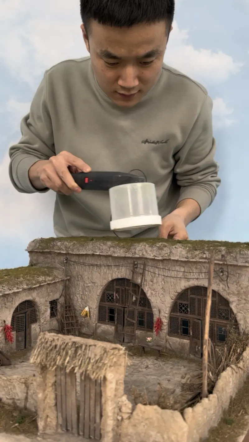 创作者手工打造乡村院落微缩模型,细致还原乡村建筑、绿植、老物件等细节,用微缩模型承载乡愁记忆,展现手工微缩模型的独特魅力。