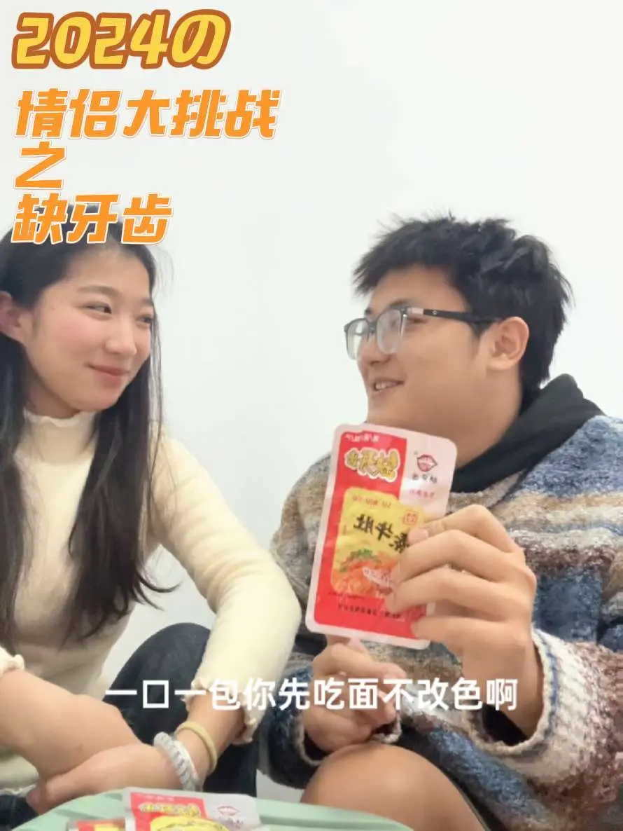 情侣大挑战之缺牙齿,嘴硬王者#情侣日常 #挑战 #美食创作人 #痔疮