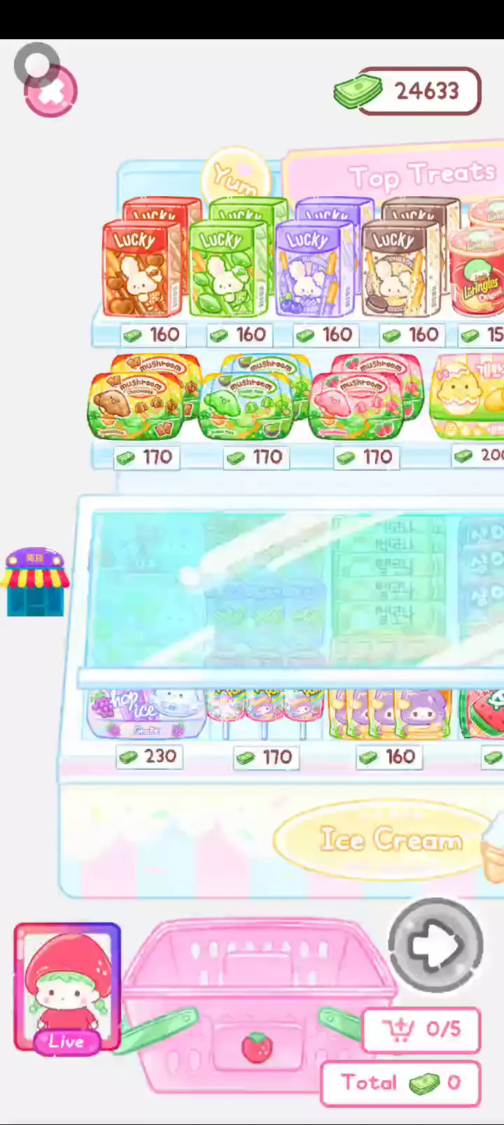 - 冰淇淋摊刚在迷你超市开张了! - 哇 - 高级冰淇淋?!观看广告可获得随机免费一球! - 五种口味?给我最好吃的一个! 制作自己专属的糖葫芦,挑战吃播ASMR吧! 「你进行草莓糖葫芦吃播的话,我就赞助100元。」 「脆口的声音太迷人了(°θ°)」 由于客人都被最近新开的许多糖葫芦店家抢走,曾经号称糖葫芦达人的父母因此卧病在床。 继承父母店面的主角露露开始糖葫芦吃播来宣传店面。 直到成为真正的糖葫芦达人那一天! 「今天我也要开始糖葫芦直播罗!( •o• )」 [串材料] 只有新鲜的水果的话,很难以一名吃播实况主存活下来。还要有松饼、地球软糖、青阳辣椒!利用奇特的材料制作糖葫芦吧。 [裹糖衣] 将材料串满竹签的话,就放进锅子搅动吧。唯有利用达人的秘法,才能裹出又薄又脆的糖衣。 [即时吃播] 咔哒咔哒!今天的吃播也大成功。热烈的聊天内容看起来反应也不错。看来得利用完成观众任务得到的赞助金来买新材料了! 来,准备好了吧?现在就马上挑战成为糖葫芦达人吧!
