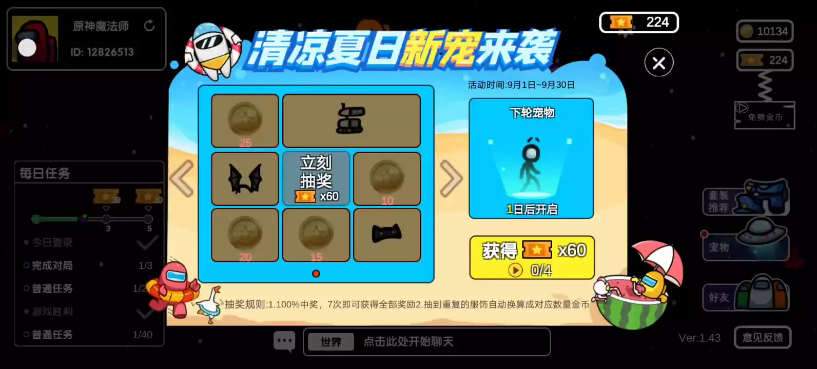 《太空狼人杀》游戏中所有玩家将会被分为船员、背叛者两个阵营,船员阵容将要在整个游戏过程中找出背叛者并将其投票逐出,而背叛者阵容则要找机会制造混乱并分裂、杀死船员们,双方都要在这艘飞船中斗智斗勇,活到最后。 规则介绍:船员(占多数): 1、完成所有任务后游戏胜利(当船员死了,幽灵模式下也可做任务) 2、左上方有进度条,完成任务会涨,涨满则游戏胜利 3、找出隐藏的背叛者并投票逐出,当背叛者全部被淘汰后船员胜利 4、发现尸体或按下紧急按钮后可召开会议,经过讨论后投票淘汰一人 5、如出现紧急时限任务需要及时完成,没有完成则背叛者胜利 船员小技巧: 1、可在监控室(Security)调出摄像头,在管理室(Admin)查看人员分布 2、在其他船员面前做扫描任务会有动画,可证明自己非内鬼3、投票可以根据讨论指定投给某个玩家,也可以在局势不明朗的时候跳过投票 目前已推出可保留存档的新版本,存档保存在云端,更换手机,卸载游戏不再愁!即使卸载游戏、233乐园或更换手机,只要登录233账号,下次游戏还可继承存档!宠物、皮肤、金币不再丢!!!
