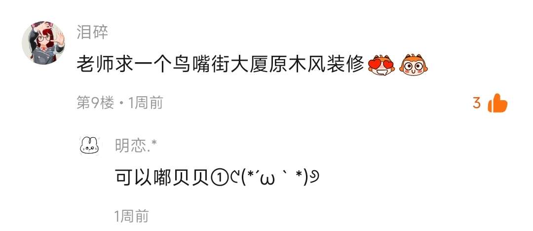 第八个素@一口鱼冻冻.🐟/贝贝私信投稿的"鸟嘴街大厦原木风装修"(?改动)∥标:主调白色系杂乱风✨