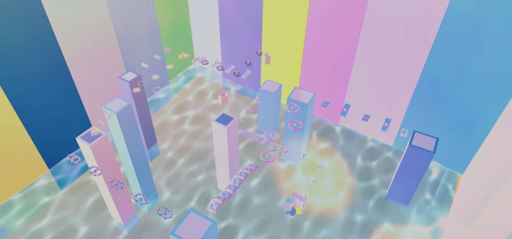 整体跑酷颜色由白. 蓝. 粉. 组成