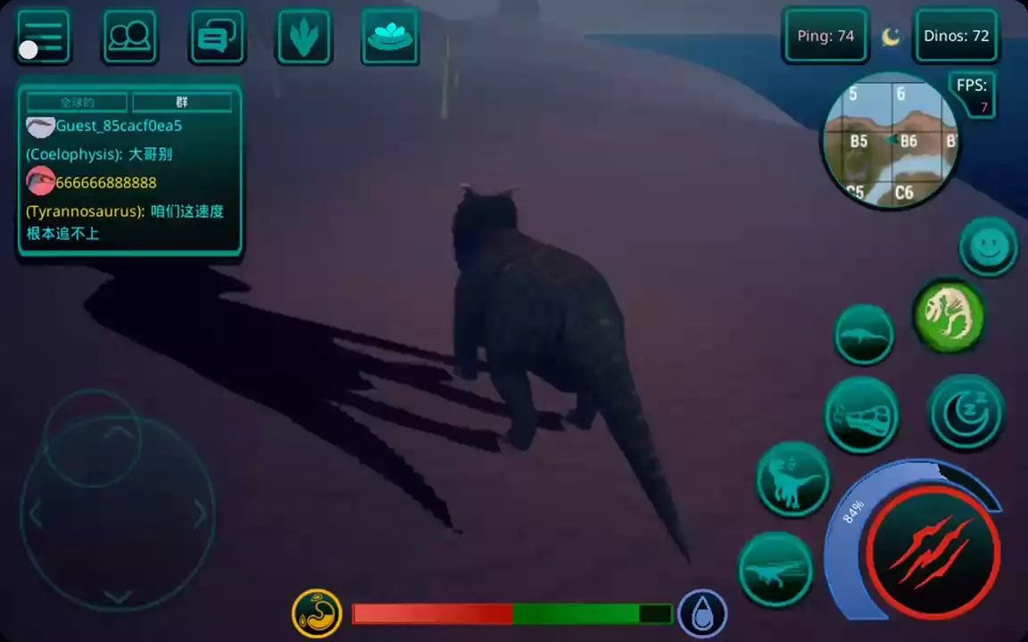 【更新:修复错误,提高稳定性】 恐龙岛是一款以侏罗纪世界为背景的逼真在线恐龙模拟器。 享受各种恐龙、逼真的图形和岛屿大地图。 选择你的恐龙并开始生存。 与您的朋友以及世界各地的玩家一起玩。 游戏中呈现了所有流行的恐龙,例如,从霸王龙、棘龙等食肉动物开始,到三角龙、甲龙等食草动物,游戏中有超过 23 种恐龙,包括飞行和游泳物种,以及所有恐龙。他们中的一些人在逼真的恐龙模拟器游戏中等待着您。