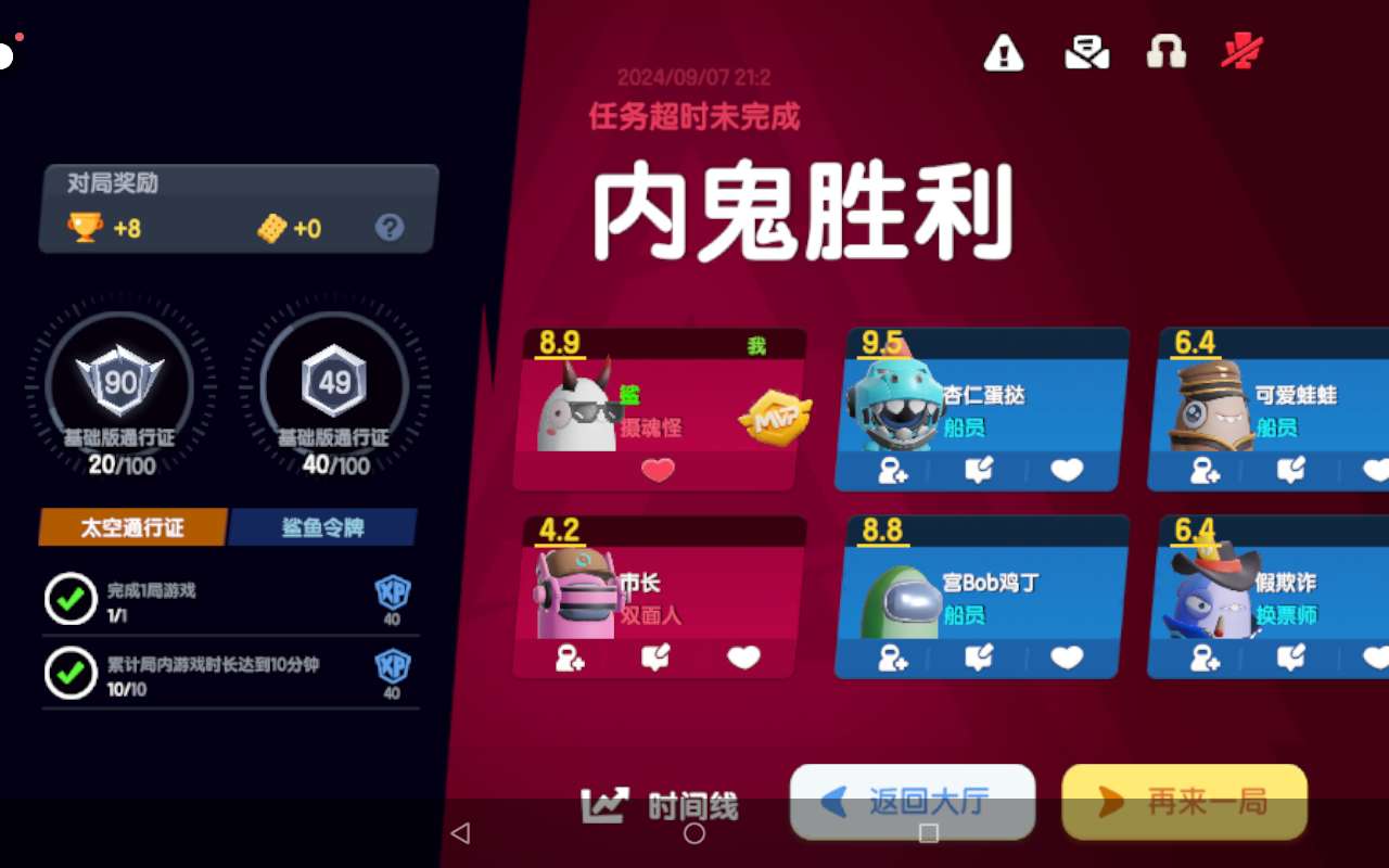 玩了好久,累死了。玩了三十几分钟,船员任务超时,不容易啊!
