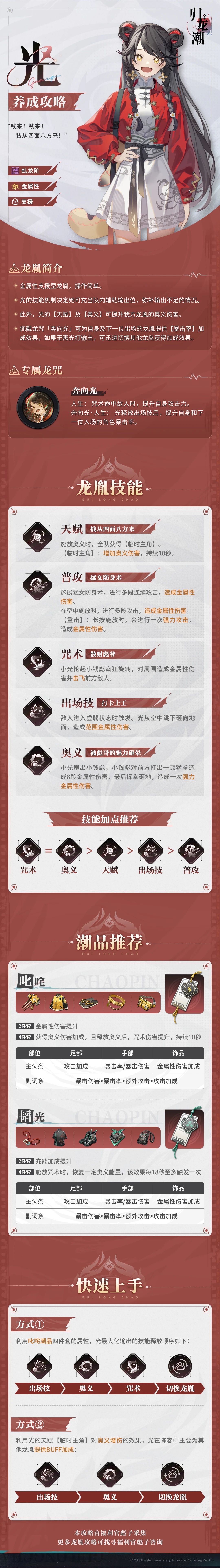小光周末接了份兼职,想给自家吞金兽挣点外快买小零食~于是屑喵就让小光上岗了!今天为大家带来玩家投稿的光 · 角色攻略,一图流了解小光!