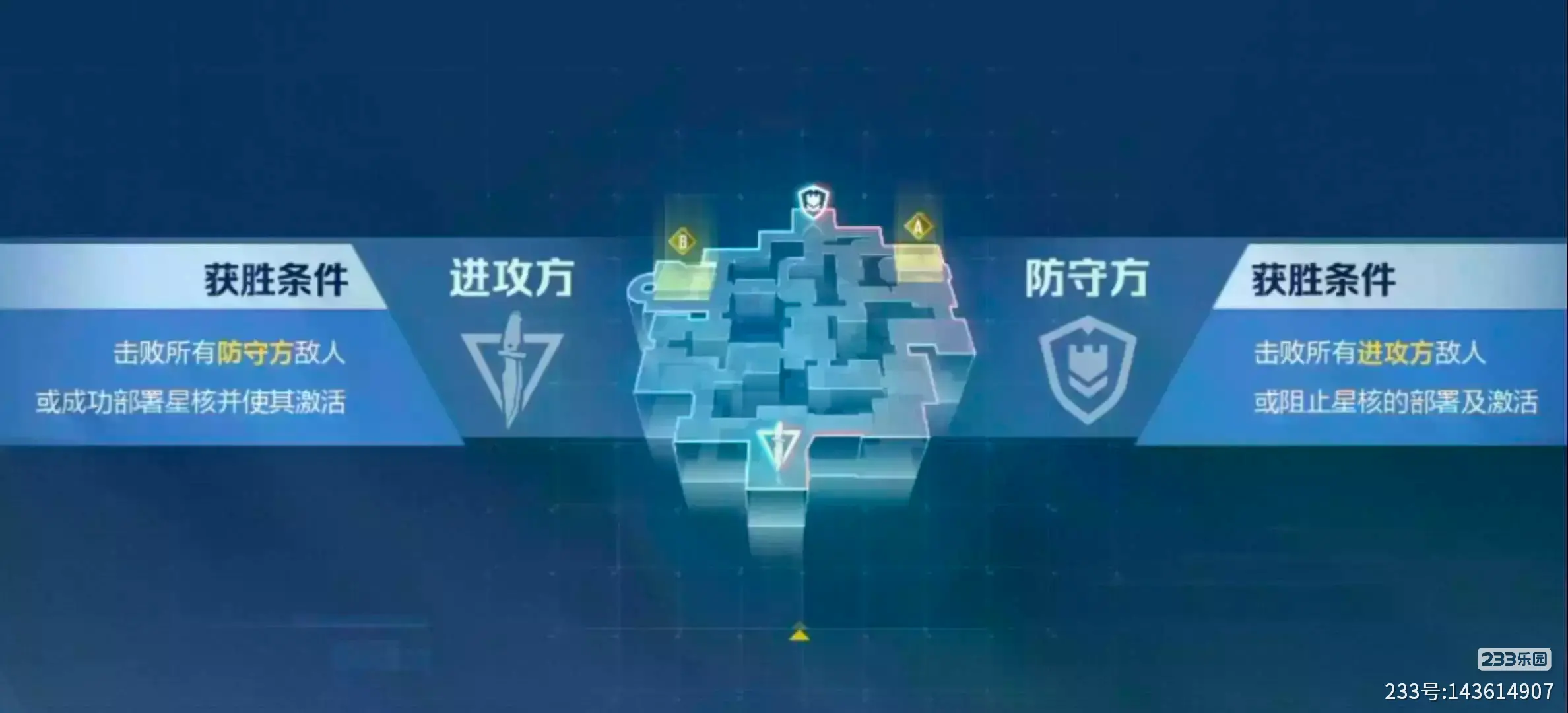 进攻方需要在规定时间内在固定位置(A点与B点)放置星核,并保护星核不被防守方回收,直到星核激活。