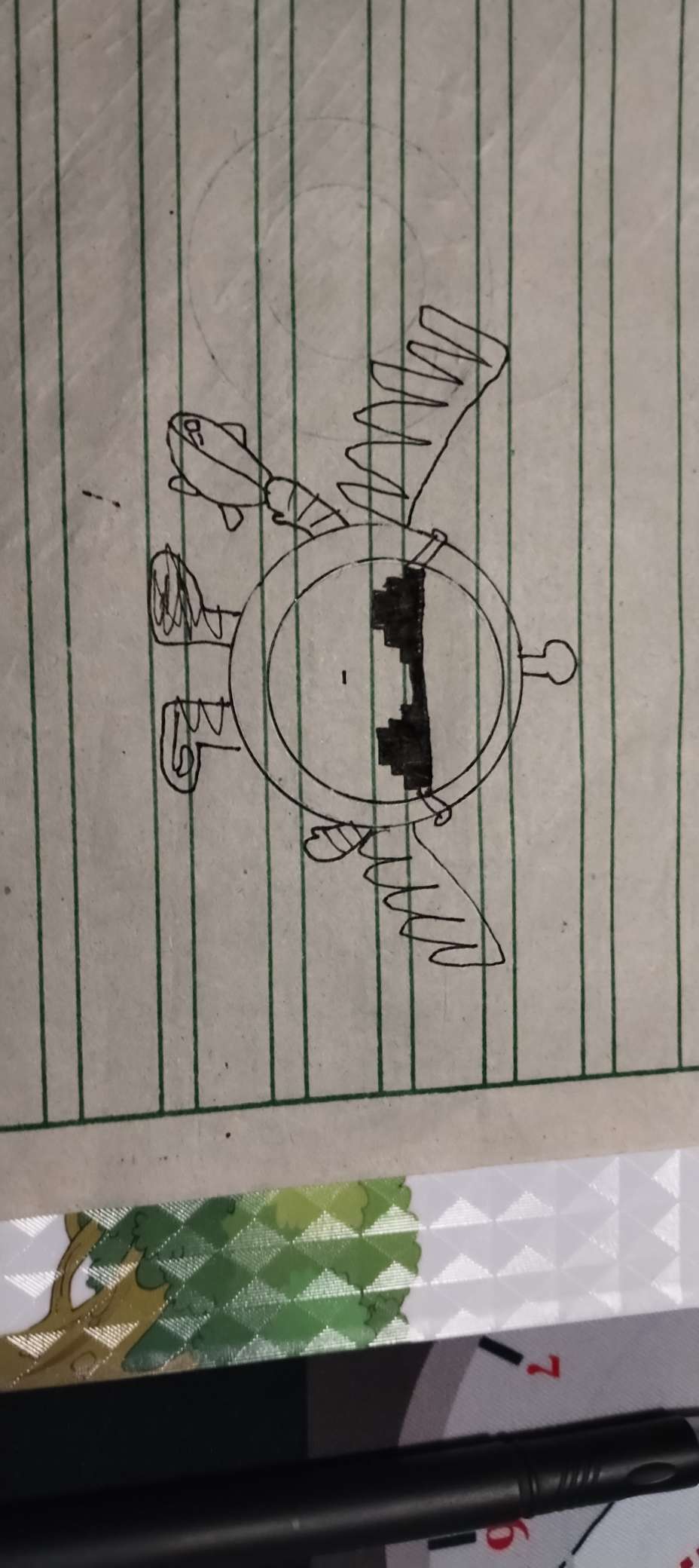 我们班同学上美术课画蛋仔,我也参加了,大致长这样。(因为是在黑板上画的,被擦了)