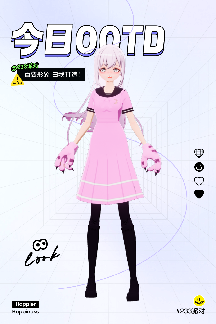 我来变装啦,主角女主,选择连尾裙,黑色,头发选择长发,加入眼罩黑帮关掉,就可以啦