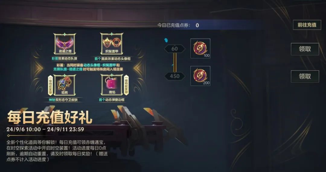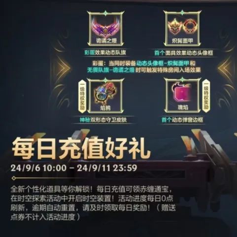 活动进度将在每日0点刷新,逾期自动重置,请召唤师及时领取每日奖励~(赠送点券不计入活动进度)