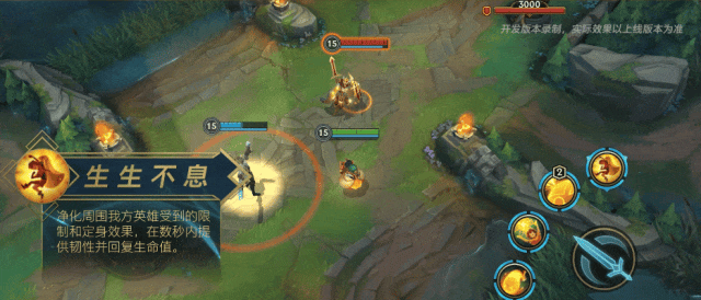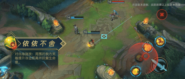 当W(2)技能选定我方英雄施放时,将与目标产生持续的链接,链接生成后没有距离限制,双方都提升攻击距离,并持续回复生命值。此时,施放E(3)技能和R(4)技能时,双方将共享所有技能效果。