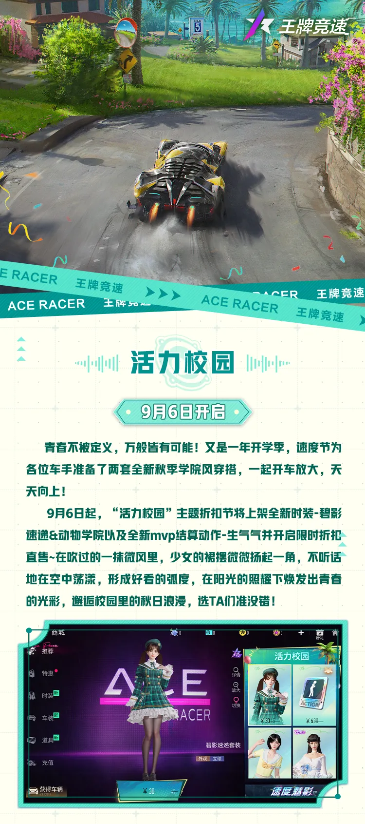上学没动力?王牌竞速来帮你~“真·开放”的王牌时装又发力啦——JK学姐&校园女神,哪款才是你的爱,跟着西理一起重返学生时代,绽放青春活力!
