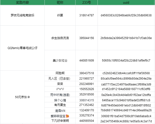 恭喜以下特战干员获得奖励,近期将会使用站内信的方式为您发放问卷,请您及时查收并填写相关信息,方便奖励的发放~