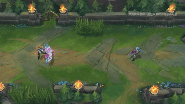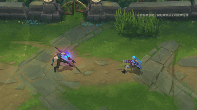 拉弓蓄力,绚烂的彩色光带缠绕在箭矢之上,滚滚气浪向后蓄积,此时弓箭射程及伤害得到提高。韦鲁斯射出亮黄色箭矢,并对敌人造成伤害,箭矢尾部伴随蓝紫色渐变拖尾特效。