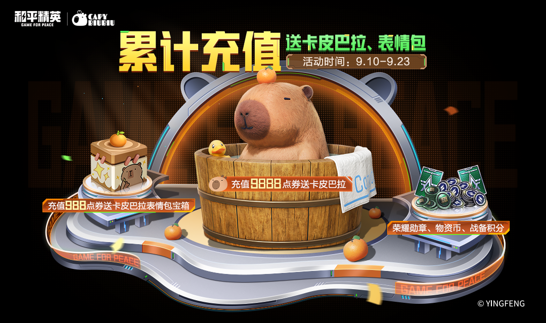 累计充值达到988点券时,可将卡皮巴拉表情包宝箱收入囊中;累计充值达到9888点券时,超萌的卡皮巴拉就属于你啦!