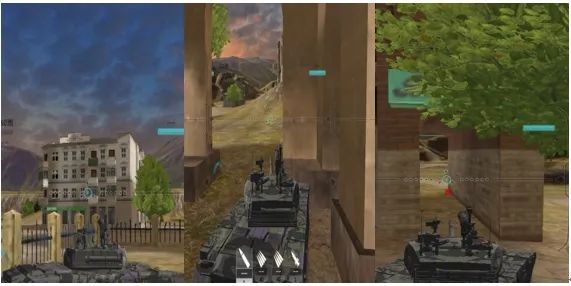 总结一下各类载具的一些地位,眼车和雷坦在道路布雷封路这种细节肯定也是很需要的,有延时销毁技能的载具开局不要吝惜,在进出口和坡道上多插导弹从而增加伤害和削减敌方血量,飞机在绕建筑物时尽量依靠建筑物地形的优势来躲避敌人,在2号点周围绕圈躲避攻击也是一个好办法,而不是直接开紧急规避,这样子就等于四个方位都暴露给了敌人从而受到更多的攻击。抢点也是非常重要的,残血的玩家需要你们时刻注意小地图上敌方火力部署从而获得逃脱的机会,捡漏抢点。这个地图有一些好玩的地方,比如飞机高飞可以躲进房屋之间的空隙里从而拖时间(图左房屋),又或是坦克和眼车躲进塔里来躲避部分空中的火力来等待支援(图中塔房),还有部分瘦的坦克机炮眼车可以躲进通道里来躲避左右上方的火力,真正意义上的苟且偷生,还能阴对方几下(图右小通道)。