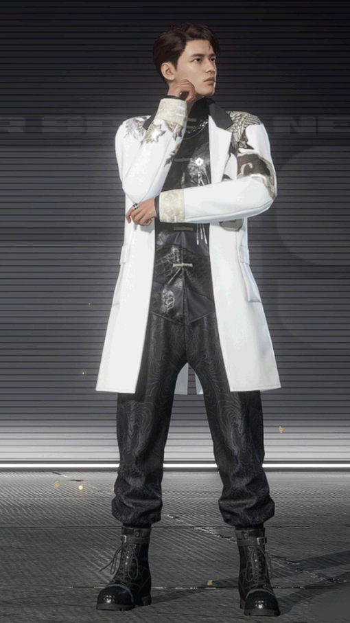 利落干净的月白大衣,辅以金线绣制的龙纹,在月光下若隐若现,更添灵动。