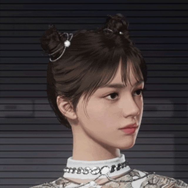 空气刘海和双丸子头,点缀小花发饰。