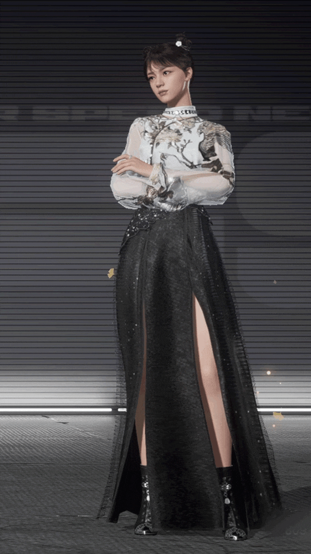 下身搭配的高开衩纱裙,更添灵动。