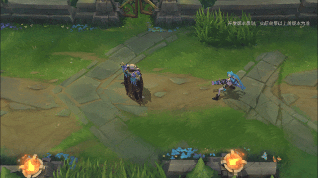 开启E(3)技能后,洛冲向我方英雄时,会给我方英雄套上带有蝴蝶印记的蓝紫色荧光护盾,并且周围会有蝴蝶在翩翩起舞。