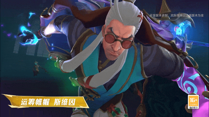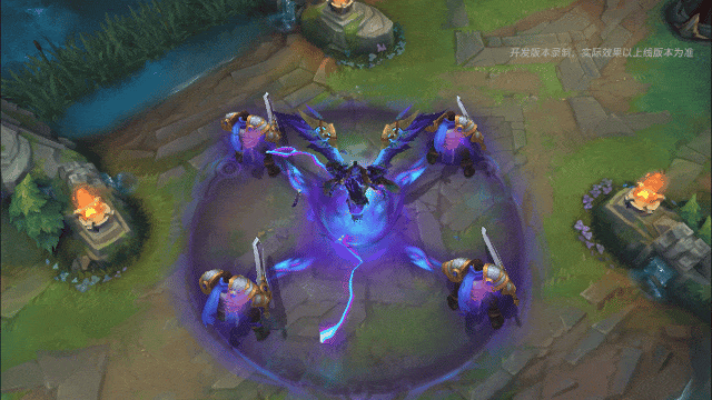 乌鸦浮现半空张口吼叫,伴随乌鸦低吼和雷鸣音效,斯维因变身为深蓝色乌鸦神祇形态,镶嵌着铜钱的蓝色渐变翅膀缓缓扇动,四周雷电交加暗流涌动,斯维因持续对范围内的敌人造成伤害,同时为自身回复生命值。