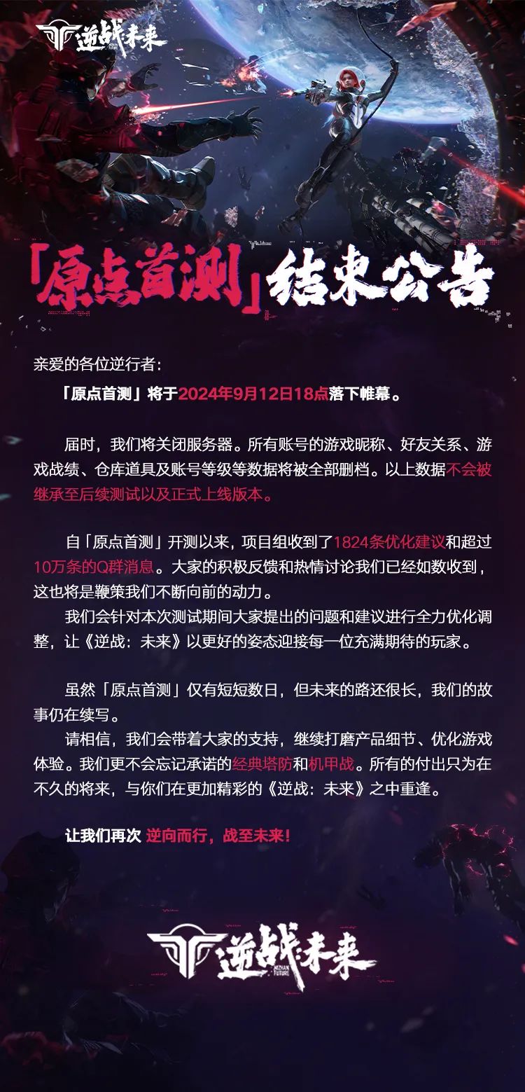「原点首测」结束公告