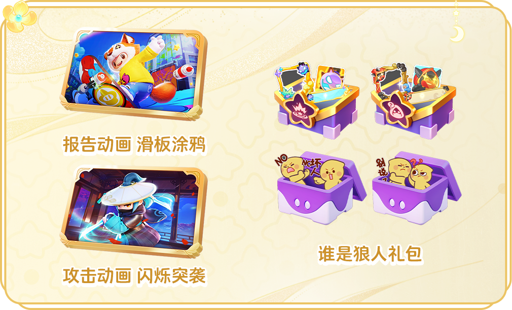 9月17日-10月9日,狼人登月计划限时开启,星宝们通过祈愿可得,头像框套装:刺客狼、魔爆狼,表情套装:别说了、极力否认。