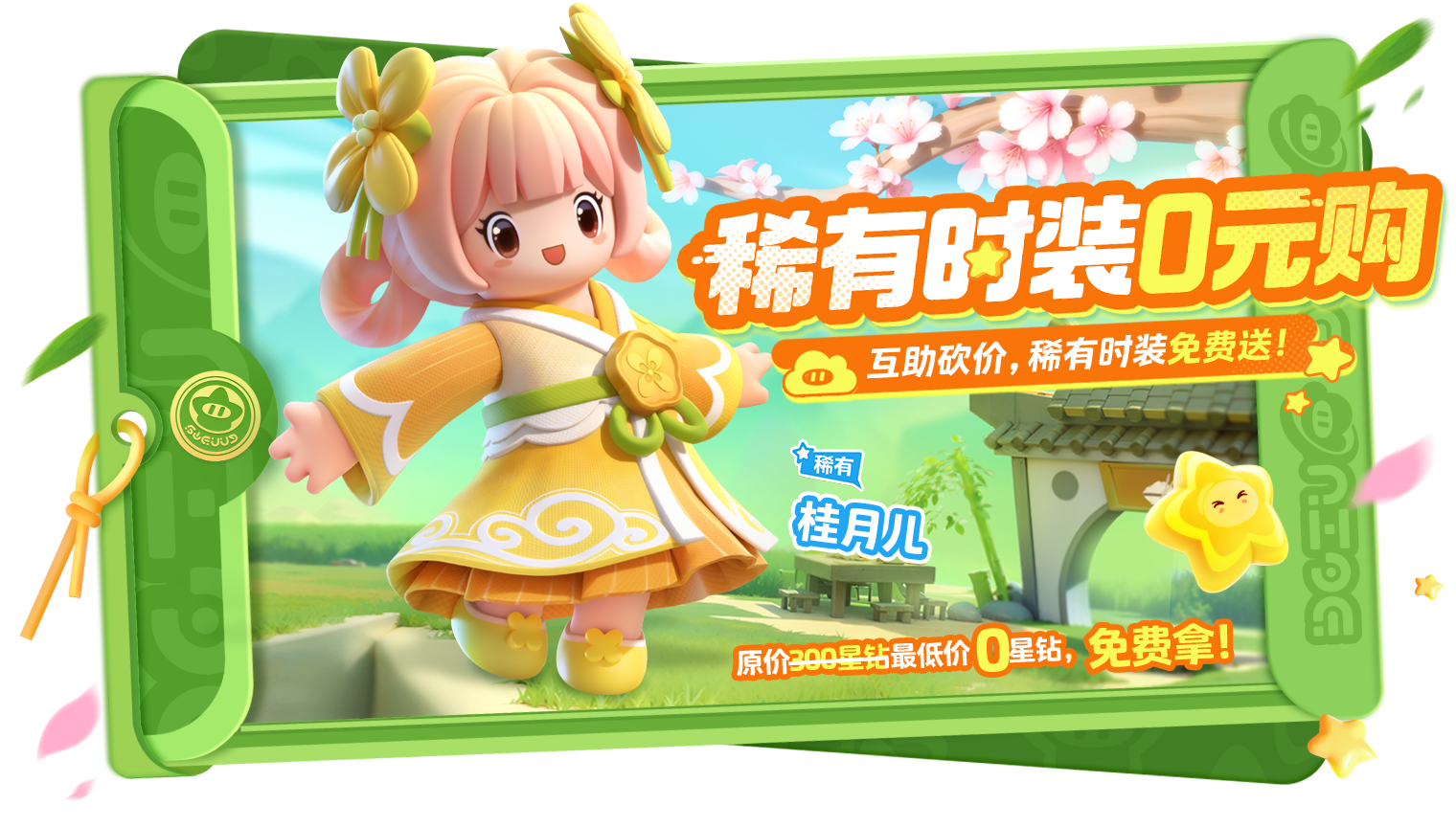 全民0元购,砍价送稀有!9月14日-9月23日,互助砍价即可得稀有时装 桂月儿!