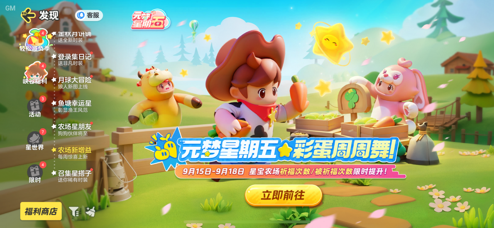 元梦星期五,彩蛋周周舞,9月15日-9月18日,星宝农场的祈福次数,以及被祈福次数限时提升啦!中秋节星妹已经决定“住”在农场了!