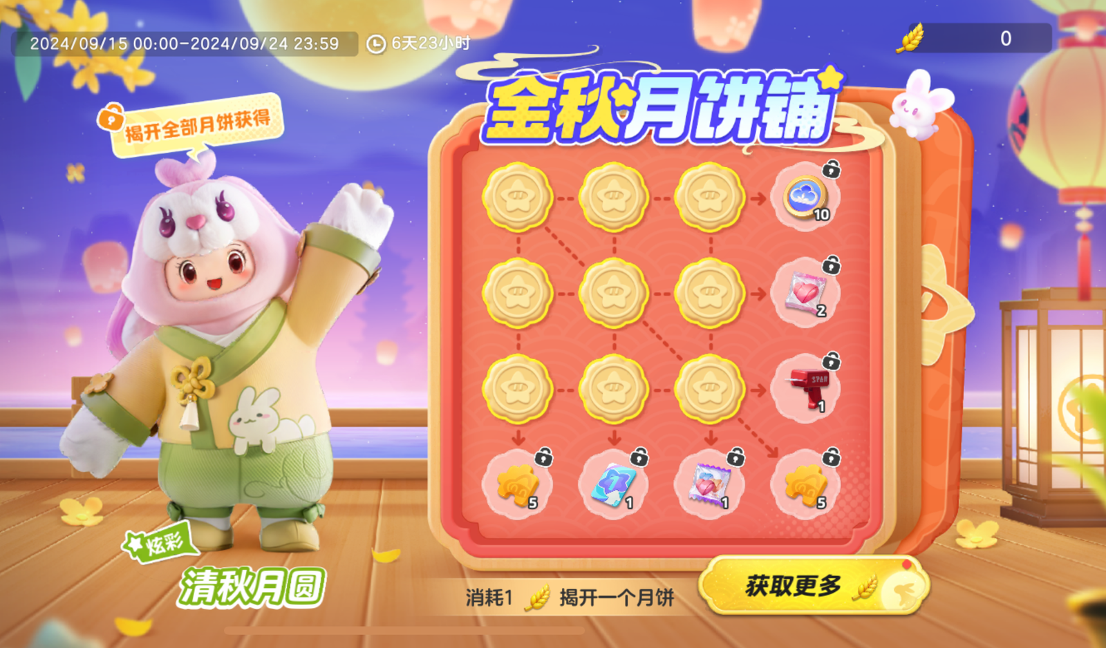 9月15日-9月24日,快来金秋月饼铺做游戏吧!揭开全部月饼可获得时装 清秋月圆!