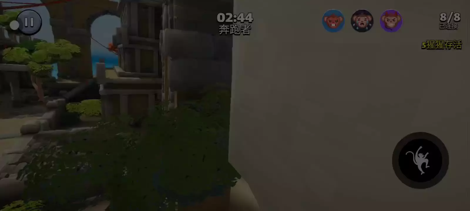 您可以扮演猎人大猩猩或奔跑猴子。在密室躲藏和寻找,尽可能多地生存。如果您是大猩猩猎人,则必须在 3 分钟内寻找并抓住所有其他奔跑者。如果您是奔跑者,则必须在不被抓住的情况下生存隐藏 3 分钟,如果您被抓住,则成为大猩猩猎人。