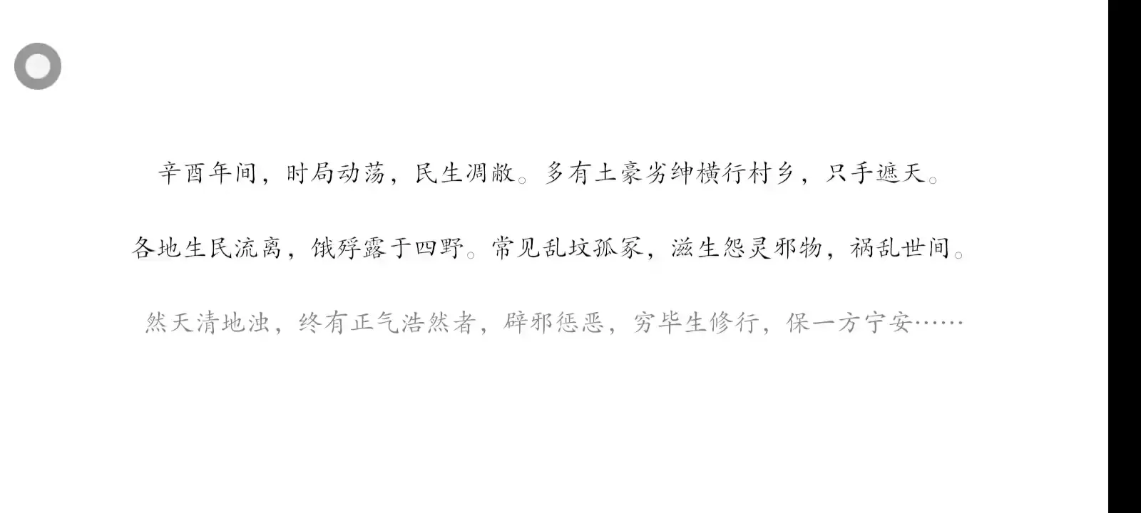 十里荒村,乱冢孤坟。 怨灵咒生,凄雾愁云。 道门金丹客,仗剑问鬼神。 青锋斩魍魉,符箓灭邪根! 前尘旧事,悲戚苦多。 人心之恶,犹甚妖魔。 只身赴血月,孤胆战邪恶。 却怀慈悲道,一念难抉择。 怨灵尽除,魂归来路。 冤屈尽洗,痴情难付。 妖患虽可平,人祸却难度。 只盼孽缘老,良善莫辜负。