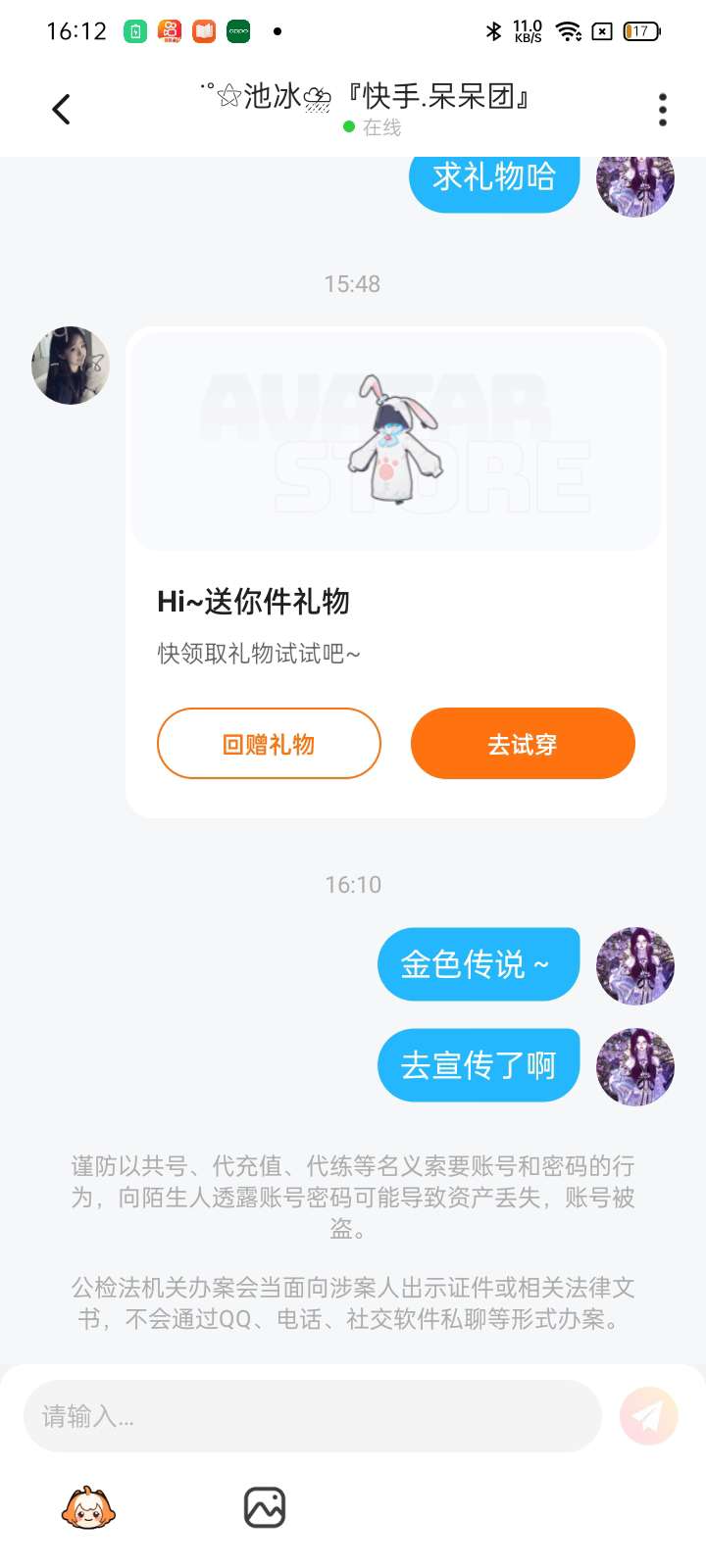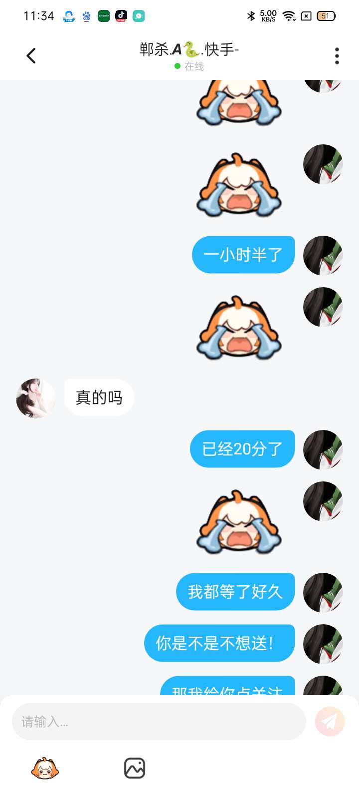 这个人说好给我送礼物,我已经等了一小时半了,他还没送,而且我也帮他涨粉了