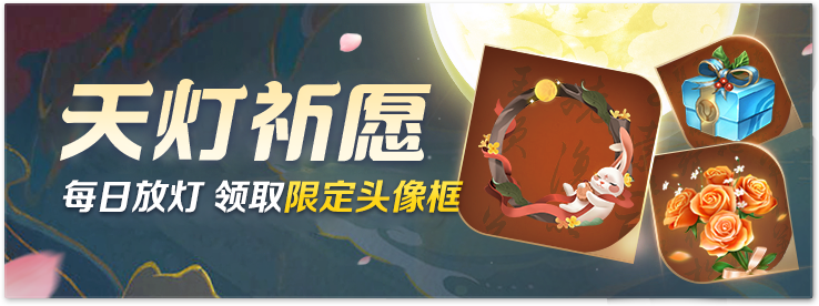 活动期间,每日放灯,可获得热诚之馨,精致手信礼包等奖励;累计放灯5次,可以获得新款限定头像框玉兔梦月