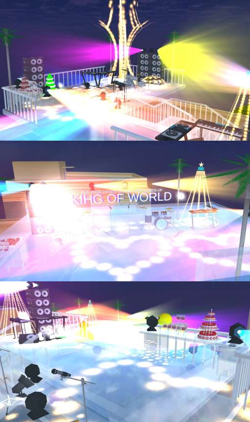 共三层结构,全玻璃建筑,包含:DJ台,乐队演出,饮料台,娱乐泳池,休闲泳池,灯光
