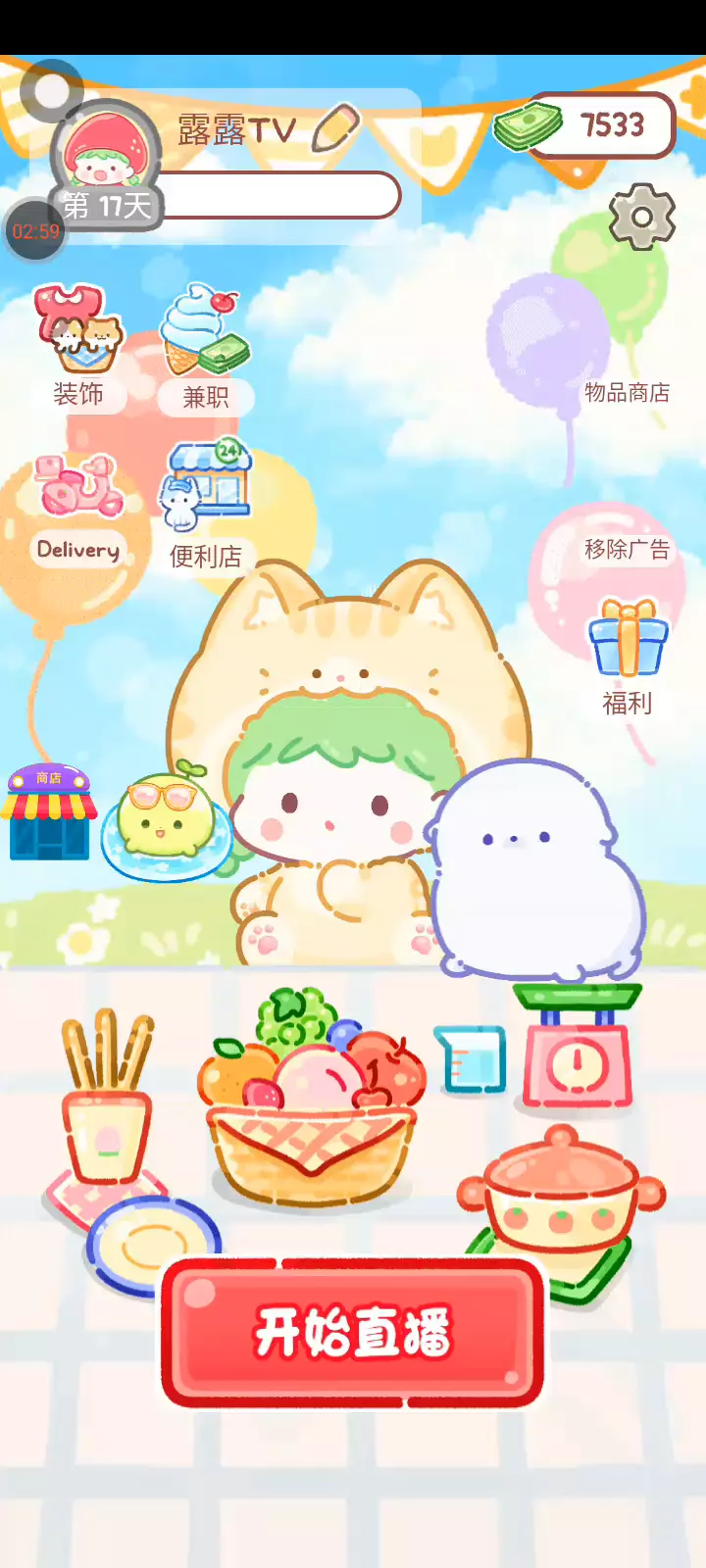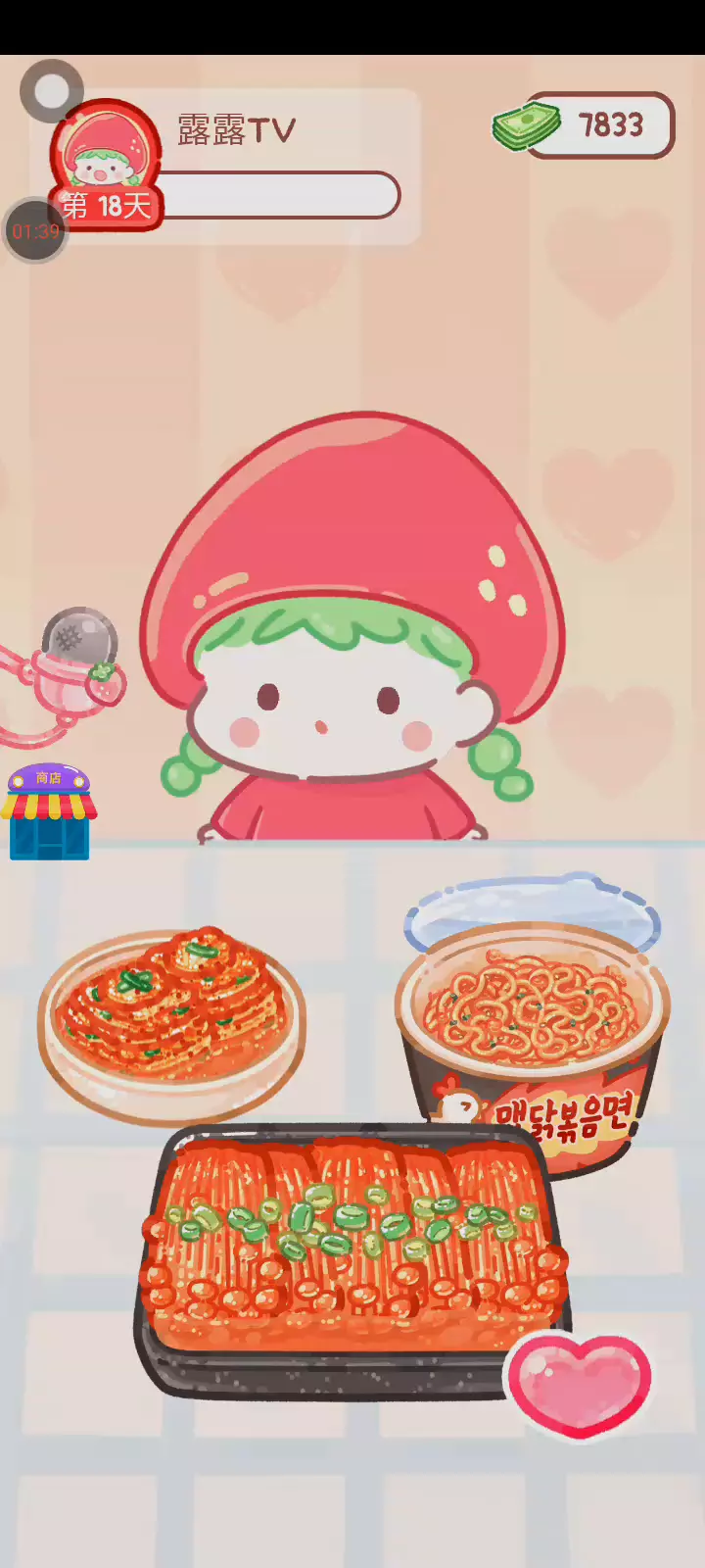 更新宠物!!! 「你进行草莓糖葫芦吃播的话,我就赞助100元。」 「脆口的声音太迷人了(°θ°)」 由于客人都被最近新开的许多糖葫芦店家抢走,曾经号称糖葫芦达人的父母因此卧病在床。 继承父母店面的主角露露开始糖葫芦吃播来宣传店面。 直到成为真正的糖葫芦达人那一天! 「今天我也要开始糖葫芦直播罗!( •o• )」 [串材料] 只有新鲜的水果的话,很难以一名吃播实况主存活下来。还要有松饼、地球软糖、青阳辣椒!利用奇特的材料制作糖葫芦吧。 [裹糖衣] 将材料串满竹签的话,就放进锅子搅动吧。唯有利用达人的秘法,才能裹出又薄又脆的糖衣。 [即时吃播] 咔哒咔哒!今天的吃播也大成功。热烈的聊天内容看起来反应也不错。看来得利用完成观众任务得到的赞助金来买新材料了! 来,准备好了吧?现在就马上挑战成为糖葫芦达人吧!