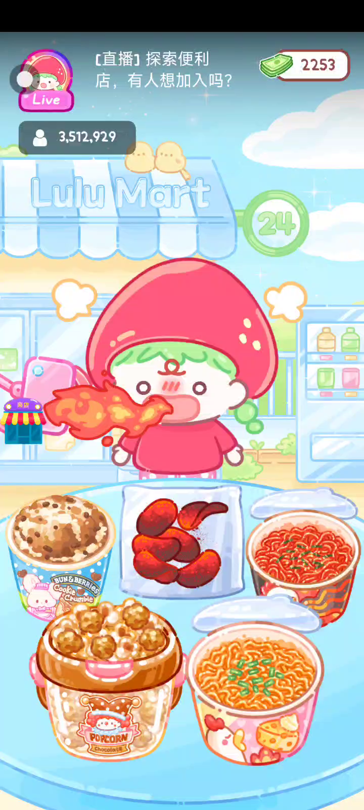 更新宠物!!! 「你进行草莓糖葫芦吃播的话,我就赞助100元。」 「脆口的声音太迷人了(°θ°)」 由于客人都被最近新开的许多糖葫芦店家抢走,曾经号称糖葫芦达人的父母因此卧病在床。 继承父母店面的主角露露开始糖葫芦吃播来宣传店面。 直到成为真正的糖葫芦达人那一天! 「今天我也要开始糖葫芦直播罗!( •o• )」 [串材料] 只有新鲜的水果的话,很难以一名吃播实况主存活下来。还要有松饼、地球软糖、青阳辣椒!利用奇特的材料制作糖葫芦吧。 [裹糖衣] 将材料串满竹签的话,就放进锅子搅动吧。唯有利用达人的秘法,才能裹出又薄又脆的糖衣。 [即时吃播] 咔哒咔哒!今天的吃播也大成功。热烈的聊天内容看起来反应也不错。看来得利用完成观众任务得到的赞助金来买新材料了! 来,准备好了吧?现在就马上挑战成为糖葫芦达人吧!