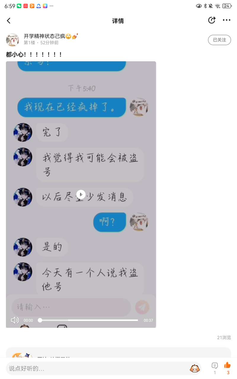这件事需要流量!素材:开学状态已疯+淡网/澄,原因:因为那个要被盗号的事我老姐