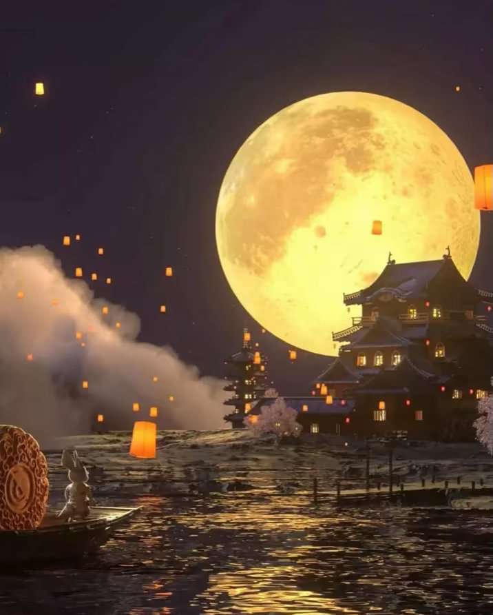 “海上月是天上月,愿各位,眼前人都是心上人” “追月人为心而动,愿各位,身边人即是意中人”
