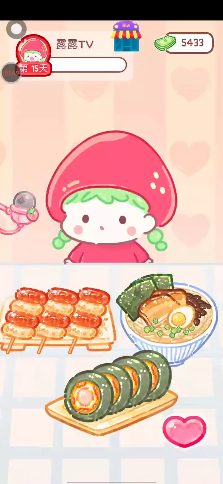 更新宠物!!! 「你进行草莓糖葫芦吃播的话,我就赞助100元。」 「脆口的声音太迷人了(°θ°)」 由于客人都被最近新开的许多糖葫芦店家抢走,曾经号称糖葫芦达人的父母因此卧病在床。 继承父母店面的主角露露开始糖葫芦吃播来宣传店面。 直到成为真正的糖葫芦达人那一天! 「今天我也要开始糖葫芦直播罗!( •o• )」 [串材料] 只有新鲜的水果的话,很难以一名吃播实况主存活下来。还要有松饼、地球软糖、青阳辣椒!利用奇特的材料制作糖葫芦吧。 [裹糖衣] 将材料串满竹签的话,就放进锅子搅动吧。唯有利用达人的秘法,才能裹出又薄又脆的糖衣。 [即时吃播] 咔哒咔哒!今天的吃播也大成功。热烈的聊天内容看起来反应也不错。看来得利用完成观众任务得到的赞助金来买新材料了! 来,准备好了吧?现在就马上挑战成为糖葫芦达人吧!