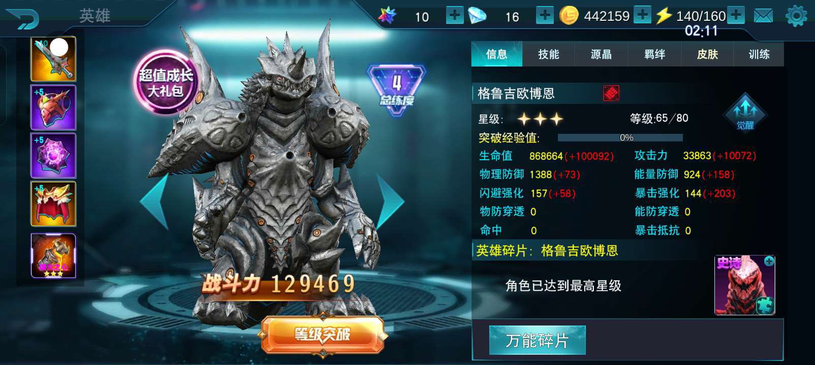 24个碎片前给女王突破到了65级