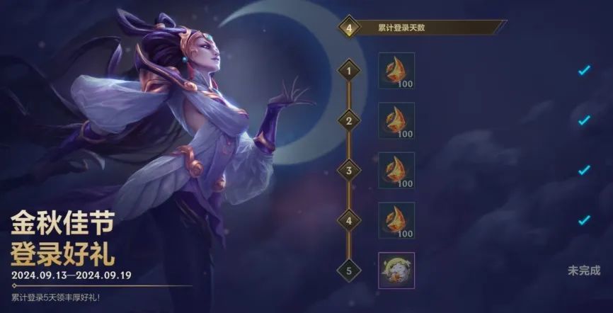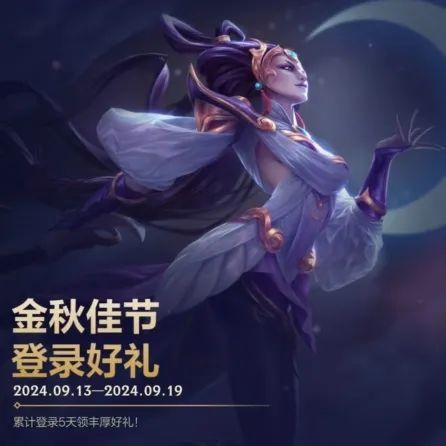 快来和小魄罗一起赏月~截止至9月19日,召唤师累计登录5天,即可领取局内表情-一起来赏月和龙魂水晶*400好礼!