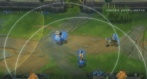 当W(2)技能选定我方英雄释放时,自身与我方英雄之间用淡蓝色的能量方块进行持续链接,此时双方头上会显现出炫酷的蓝色星星标识。