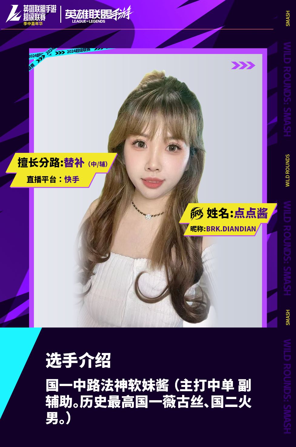 BRK破界队的队员由国服第一薇古丝 点点酱以及联盟开箱博主 鹤云、正能量主播 汤姆、韩系帅哥 萧炎、技术主播 骚铭、实力AD 太阳Xsun组成。卓越的个人能力再加上灵活的战术打法,是他们的致胜“法宝”!