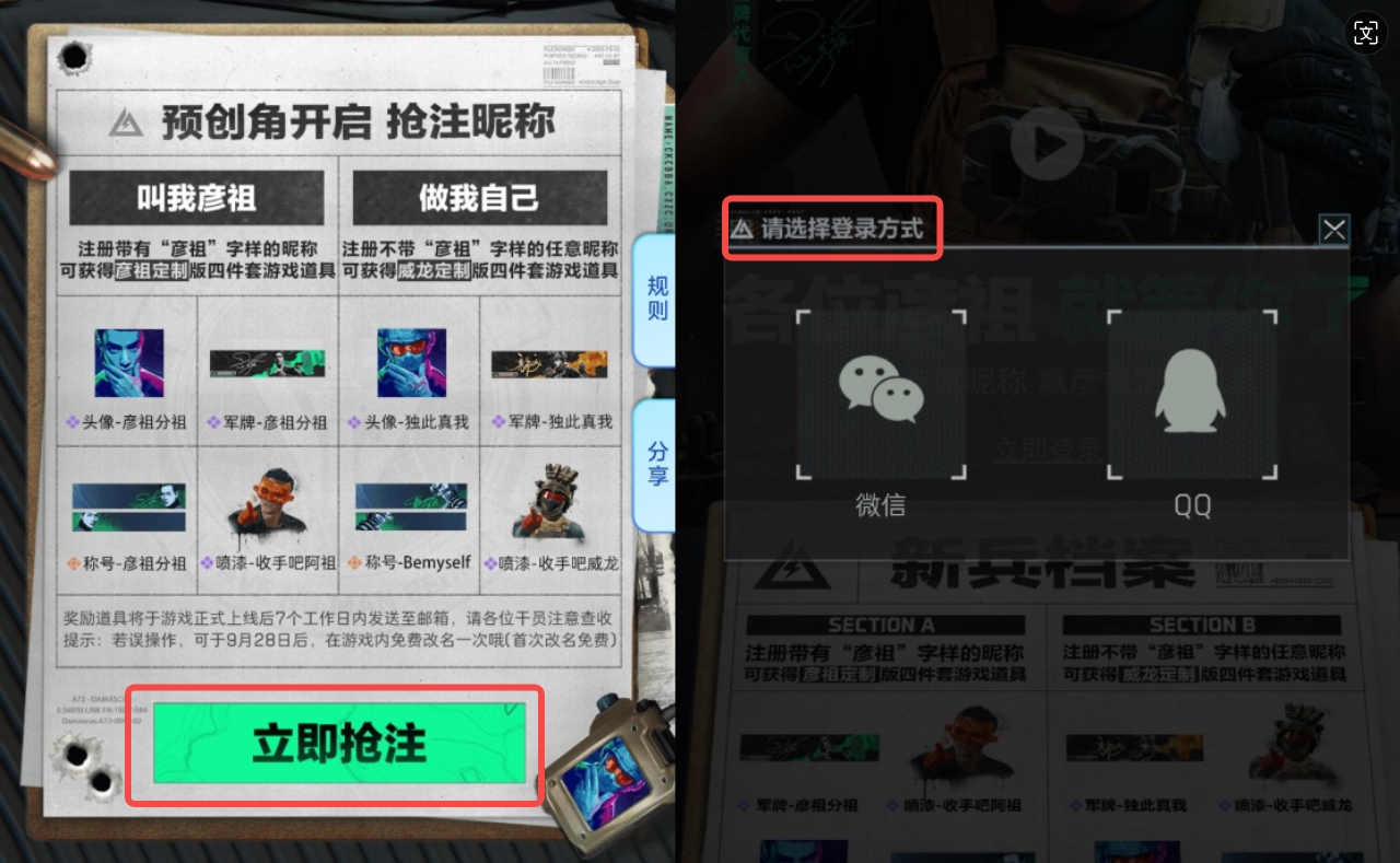 打开活动链接后点击“立即抢注”按钮跳转对应链接,点击“立即登录”登录您的微信/QQ账号,填写昵称即可,干员们快来参与吧!