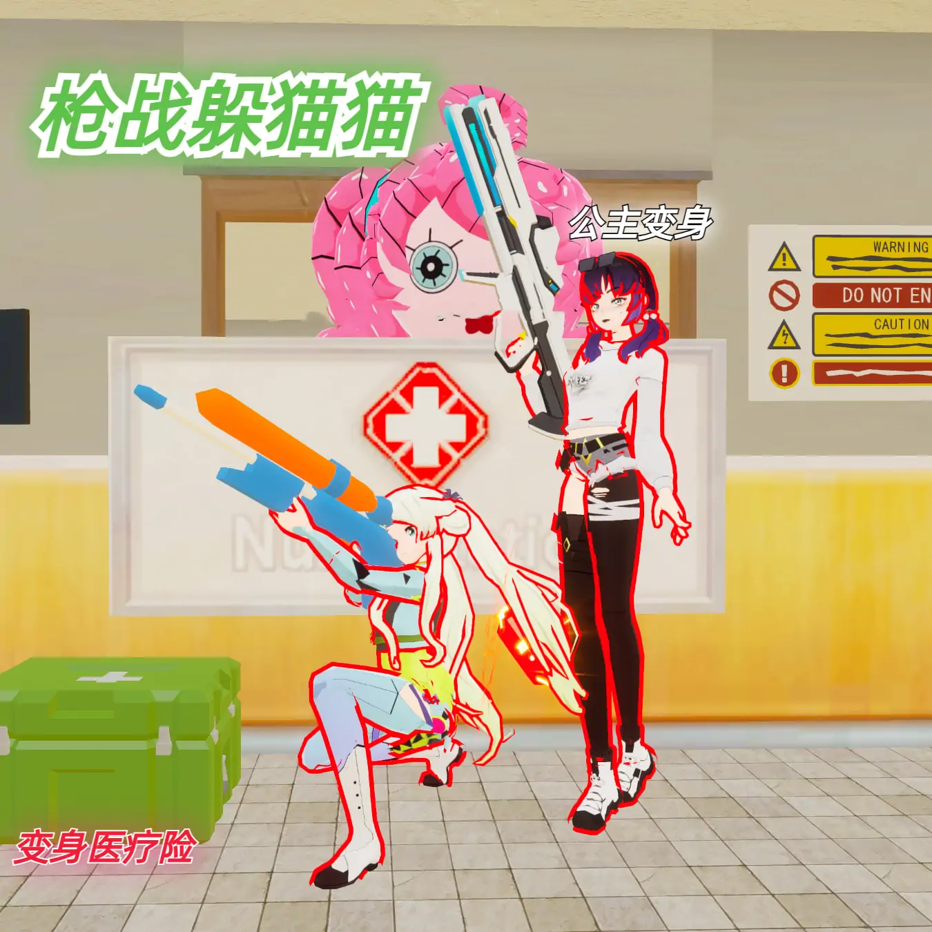 快来躲猫猫,在废弃医院可变身各种东西,躲藏到敌人察觉不到的地方,就是胜利,也可切换阵营拿起武器去寻找躲藏的玩家,将其击败!